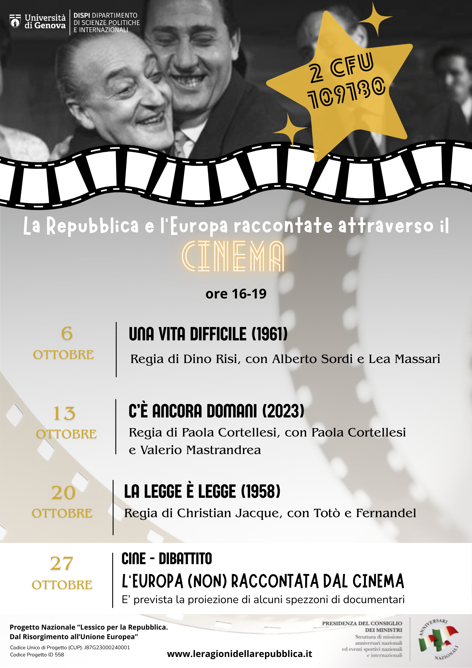 Ciclo di proiezioni - Primo incontro 6 ottobre 2025 ore 16.00 aula Mazzini