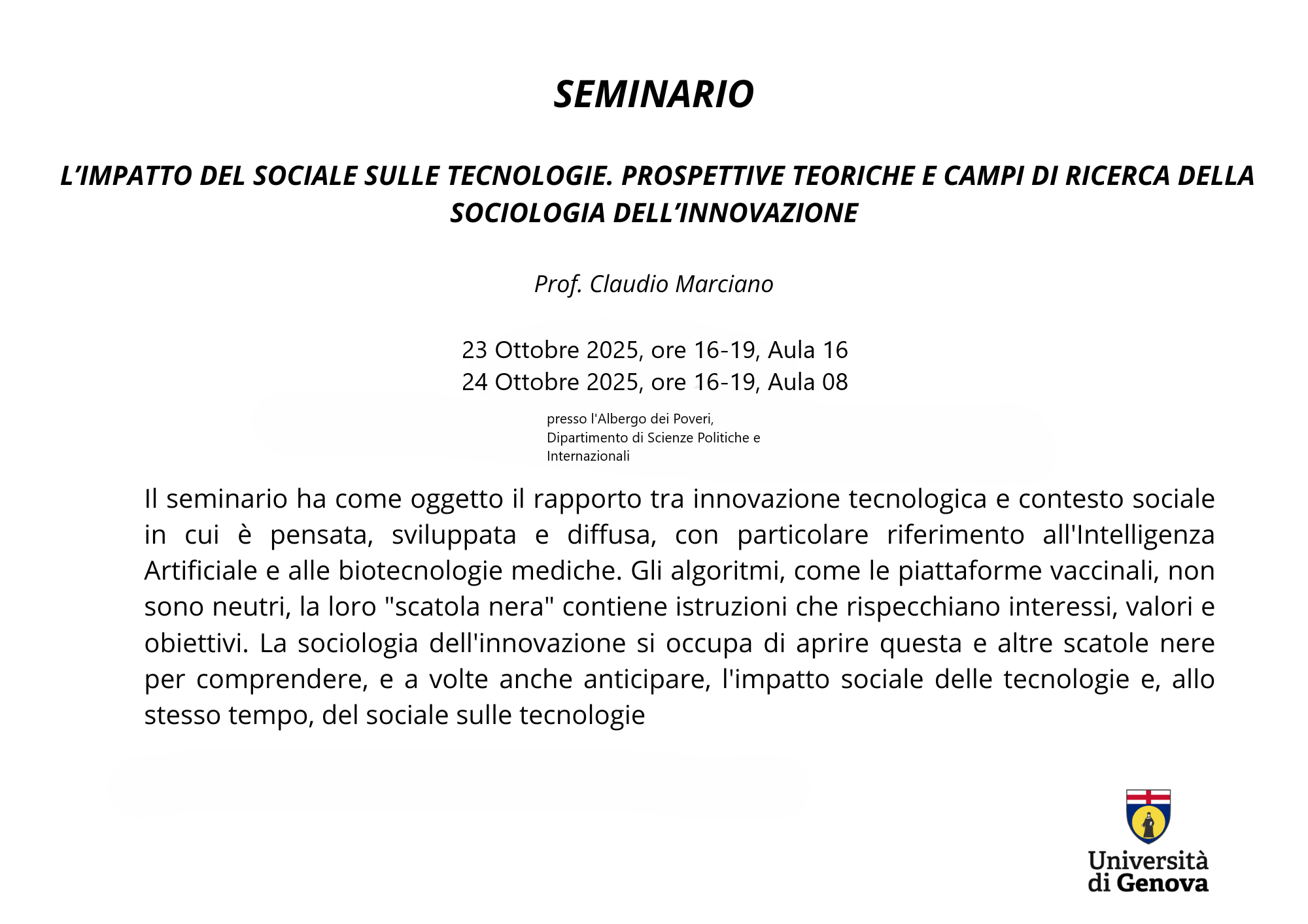 Seminario - 23 e 24 ottobre 2025 - ore 16.00 - 19.00, Aule 16 e 8
